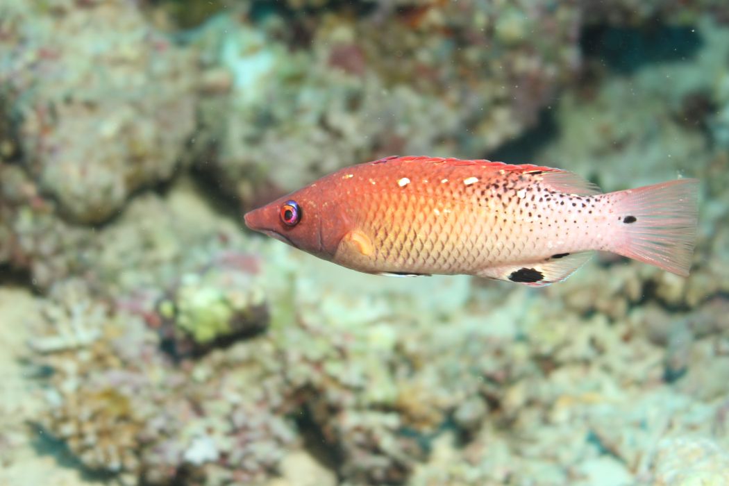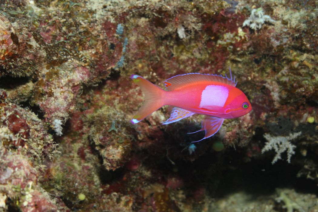 Luzon anthias were seen flirting at the 120 ft/ 32 m depth all over the rubble in between dotted fairy wrasses.