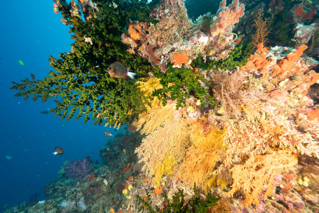 Drapey soft corals at Rainbow Wall ~ Janet