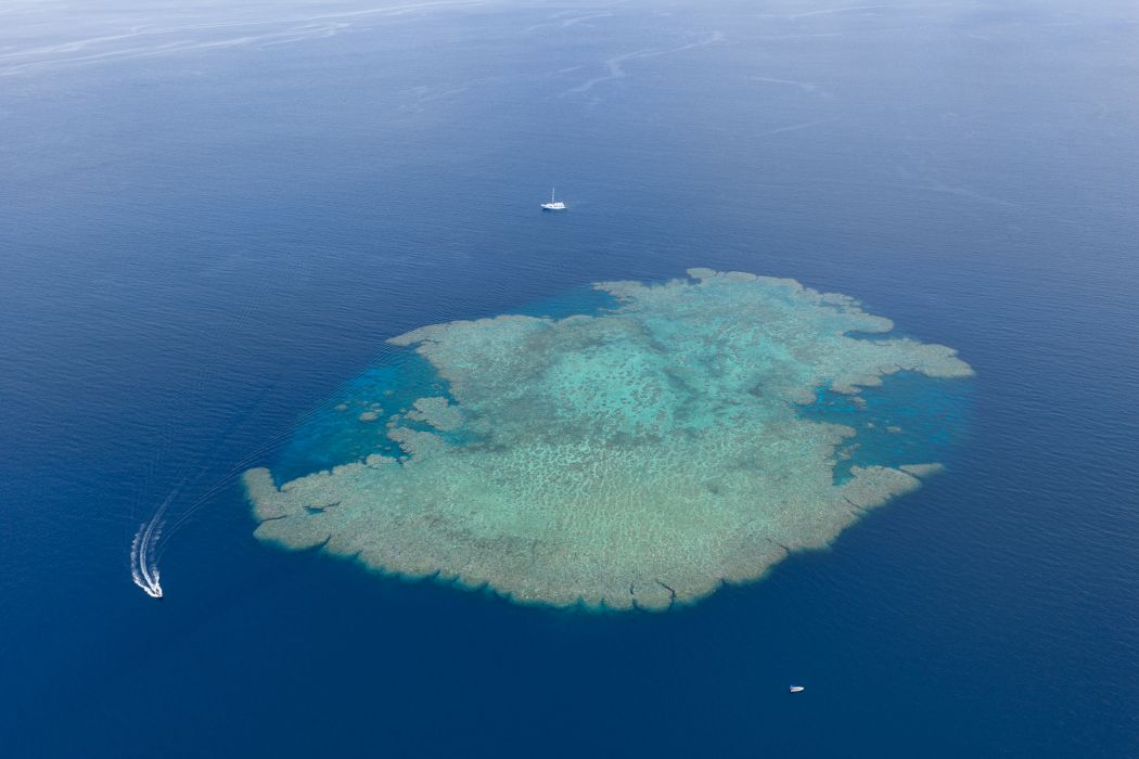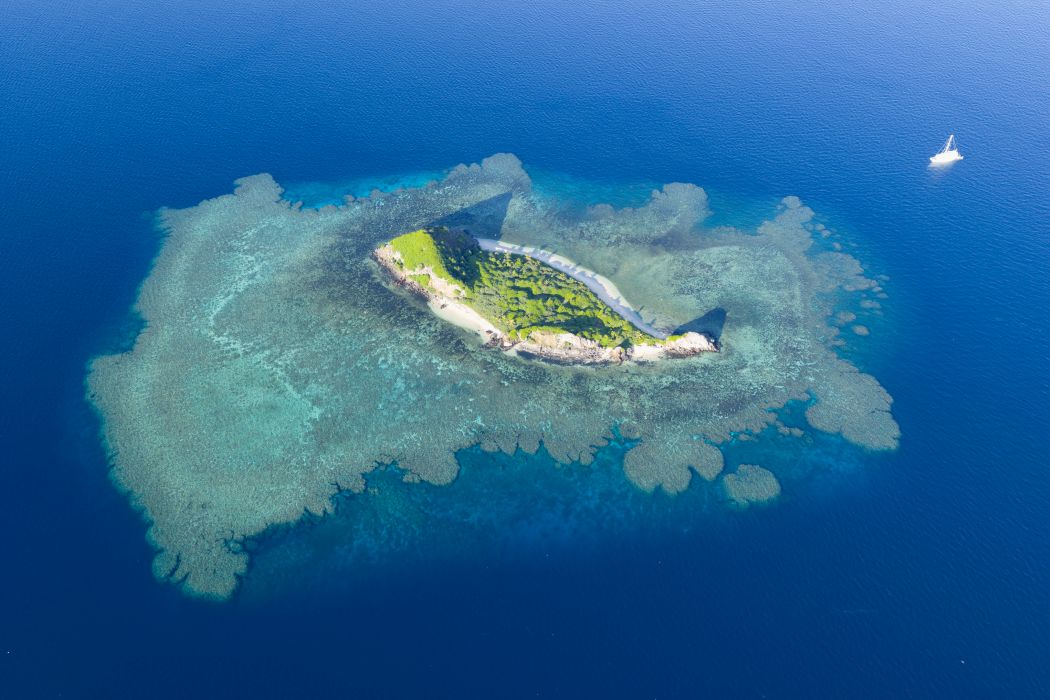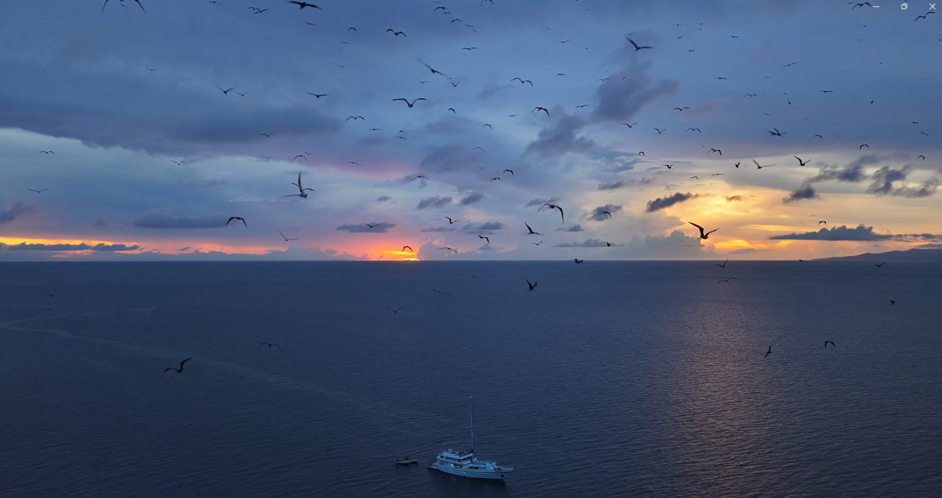 Drone shot by Ethan: you can see Nai'a and one of our skiffs