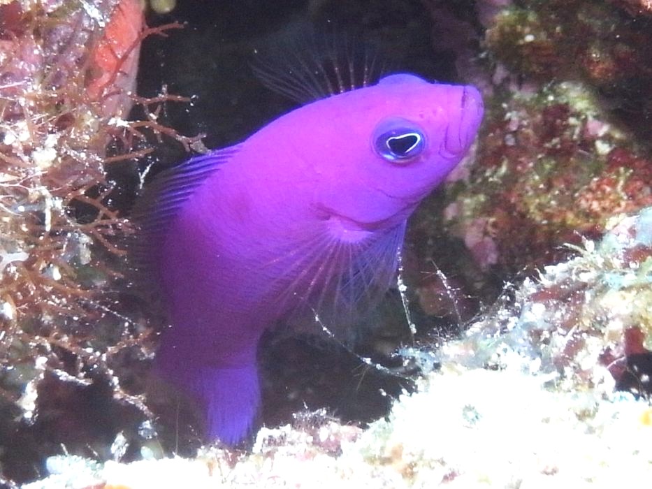 White reef sharks, oceanic triggerfish, turtles, scorpionfish, stonefish, leopard blennies, dragonets, shrimp gobies, blue dragons, file clam, and golden damselfish eggs.