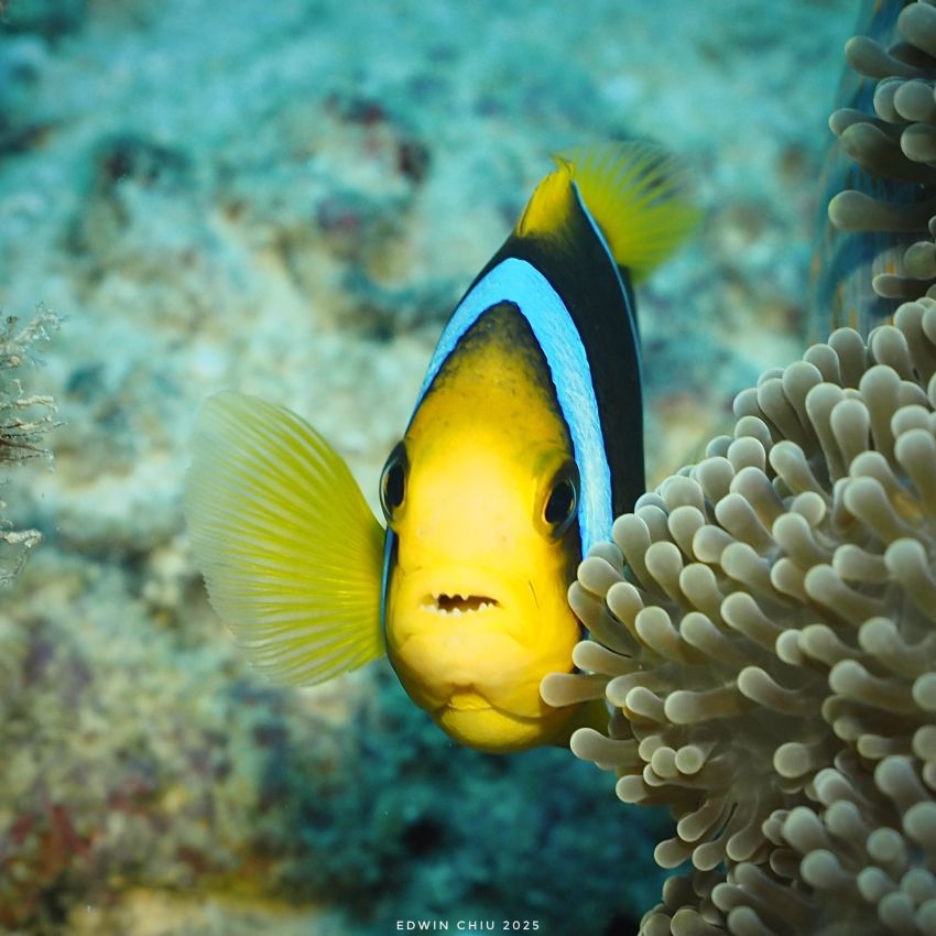Baby anemonefish moving around much like a juvenile sweetlips!