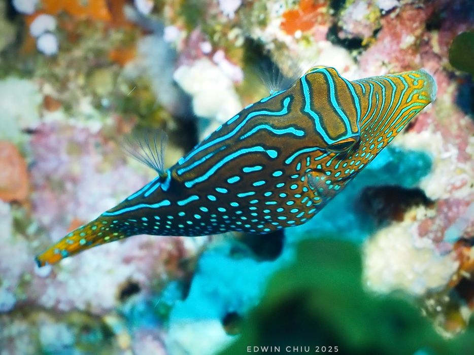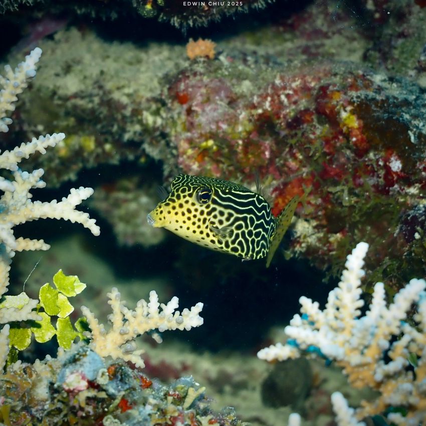 Simon almost had a fight with his buddy Edwin, as someone was hitting him repeatedly on the fin. It was not Edwin, but a very mad golden damselfish who felt his home infiltrated by a fin and boot.