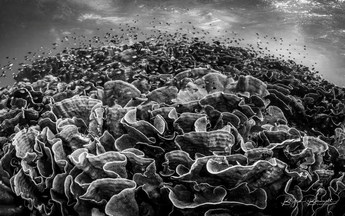 Scorpionfish, Randall’s shrimp gobies, nudibranch eggs, blue dragons, hawk anthias, fat hammer head shark dilly dallying in the shallows; all surrounded by soft and hard corals.