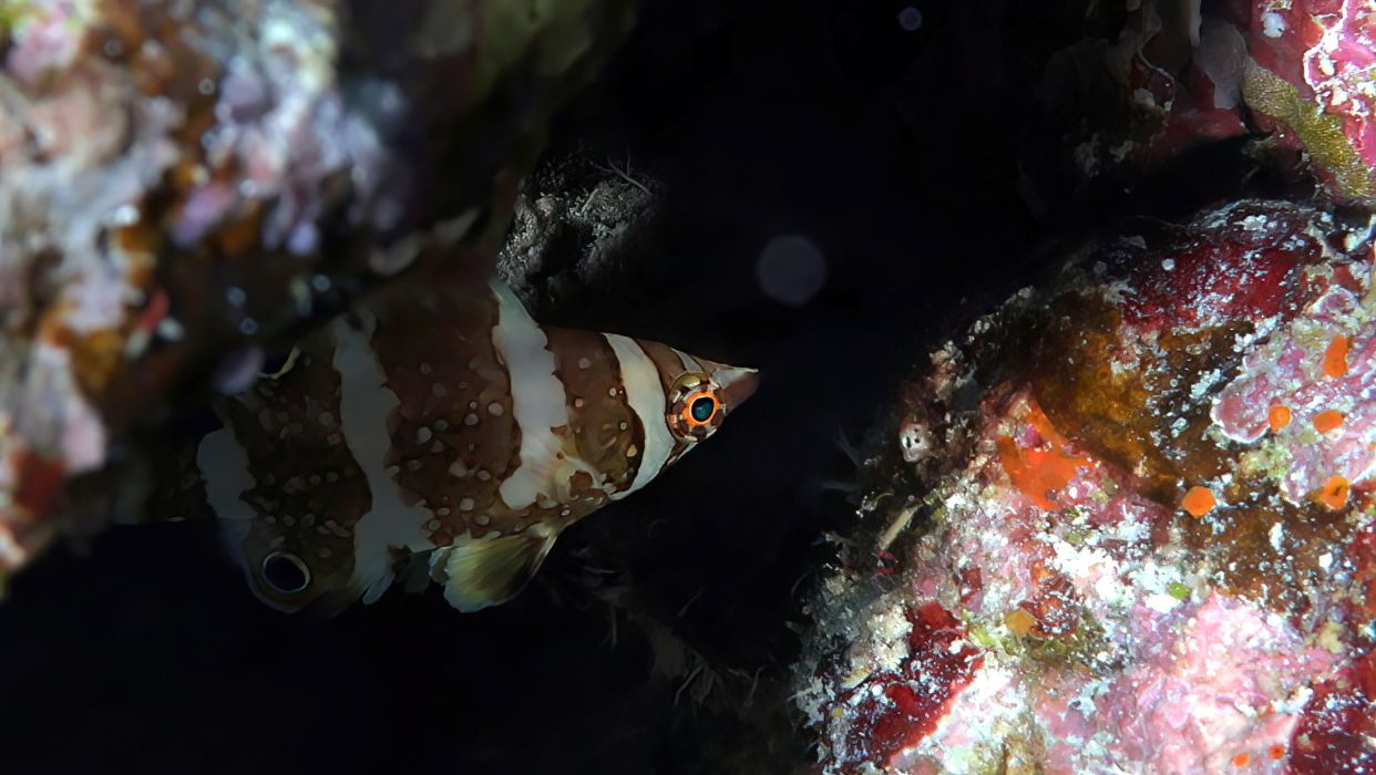 Sharks at Nigali Passage, as well as our famous cabbage patch. On our way there we could slow down in the shallows to enjoy both a flame hawkfish AND leopard blenny living in their own pocillora.