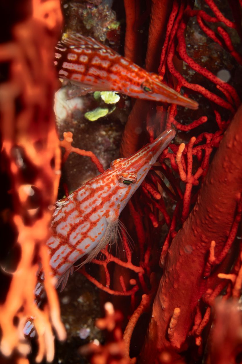 A pair of longnose hawkfish ~ Fletcher