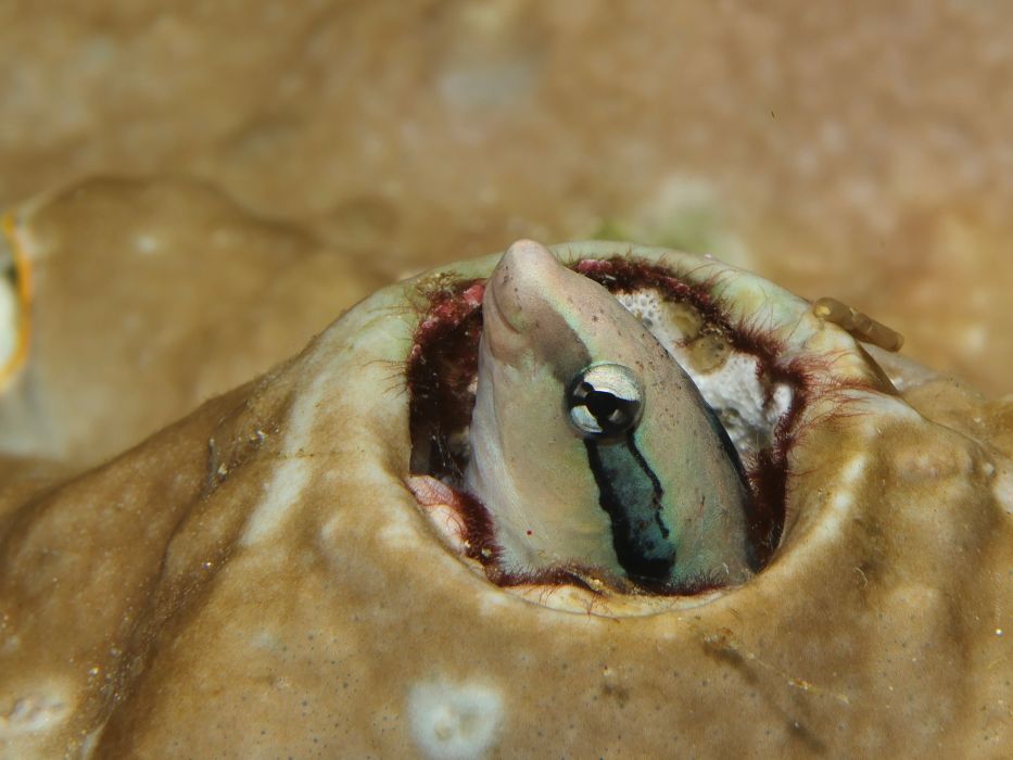 The elusive sharpnose pygmy wrasse and its little baby inside a crevice!