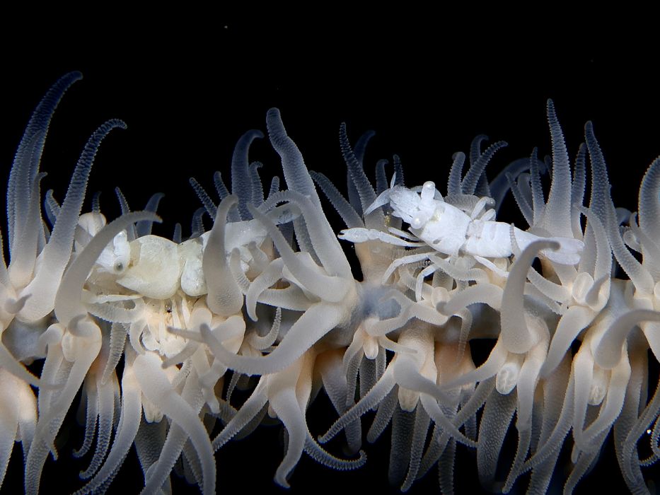 So many sexy shrimp around a bubble anemone with very feisty anemonefish.